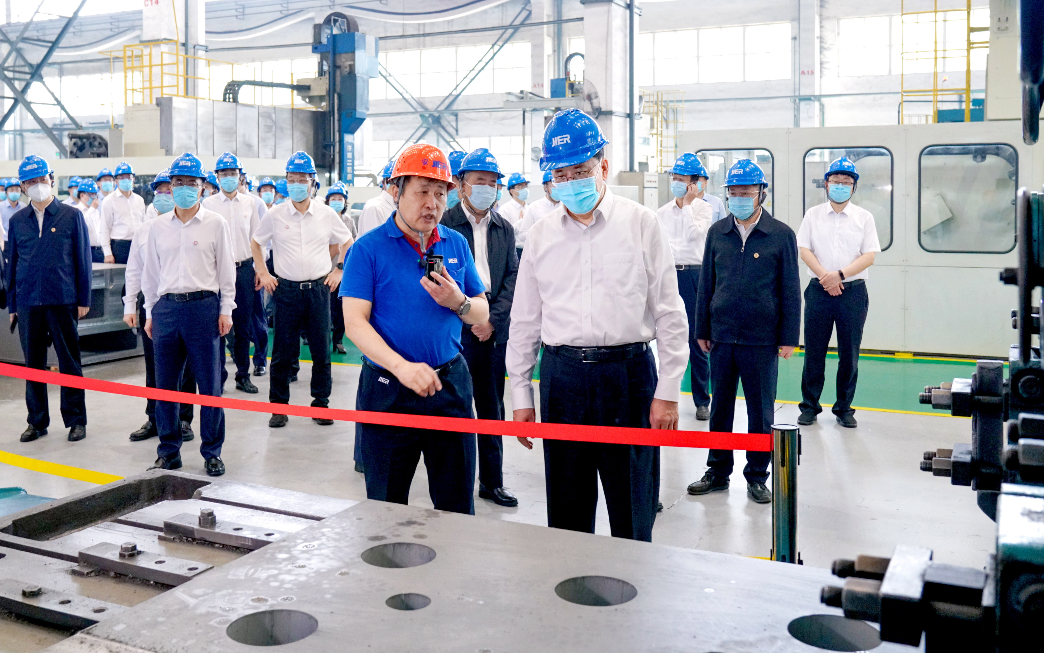 5月31日上午,中央政治局委員、重慶市委書(shū)記袁家軍,市委副書(shū)記、市長(zhǎng)胡衡華率領(lǐng)重慶市黨政代表團(tuán)來(lái)集團(tuán)公司調(diào)研。山東省委書(shū)記、省人大常委會(huì)主任林武,省委常委、濟(jì)南市委書(shū)記劉強(qiáng),副省長(zhǎng)周立偉等省市領(lǐng)導(dǎo)陪同。槐蔭區(qū)委書(shū)記孫常建以及濟(jì)南二機(jī)床集團(tuán)領(lǐng)導(dǎo)張世順、高守源、任立偉接待了代表團(tuán),并陪同參觀(guān)產(chǎn)品展廳及重型壓力機(jī)裝配車(chē)間。