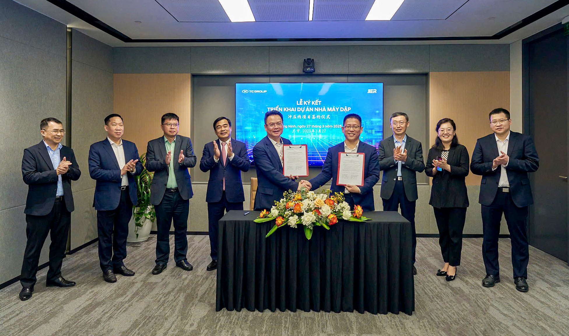 在越南,任立偉董事長與成功集團董事長阮英俊進行會談交流,雙方簽署沖壓車間整體解決方案合作協(xié)議。同時,與越南本土知名新能源汽車主機廠達成沖壓線項目合作,實現(xiàn)越南市場新突破。